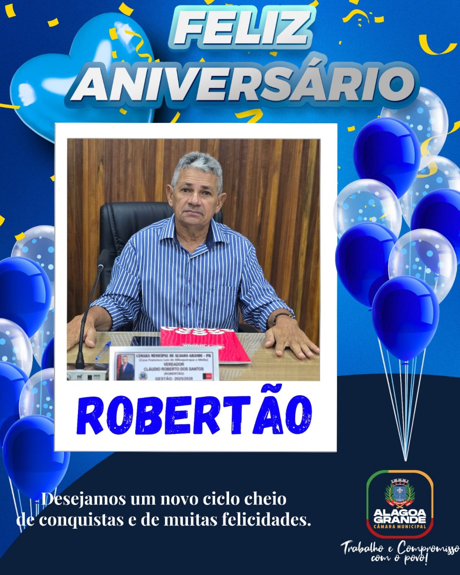 São os votos sinceros de todos que fazem parte da Câmara Municipal de Alagoa Grande, desejando um novo ciclo repleto de realizações e muitas felicidades. 🎂🎈