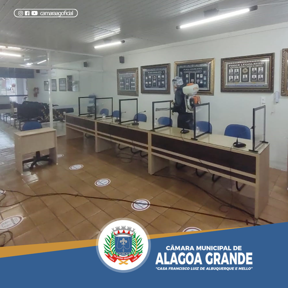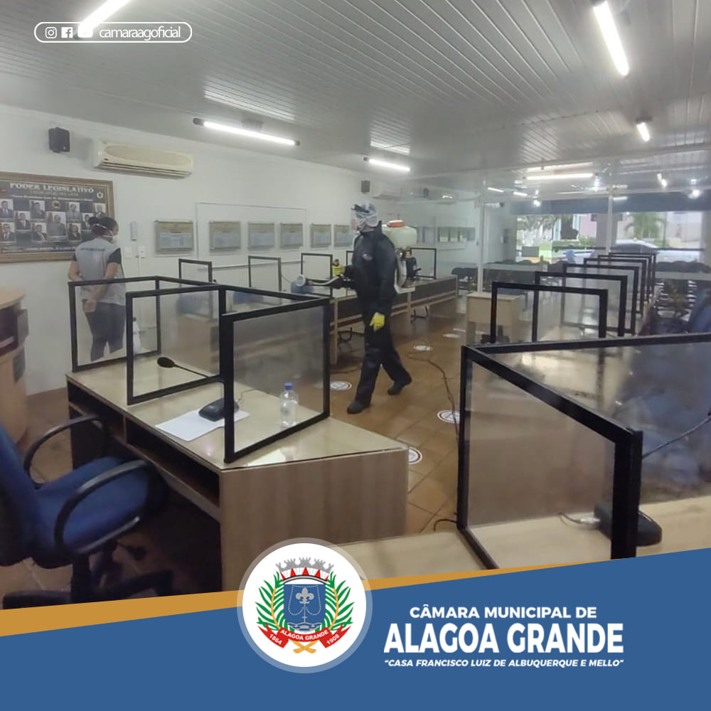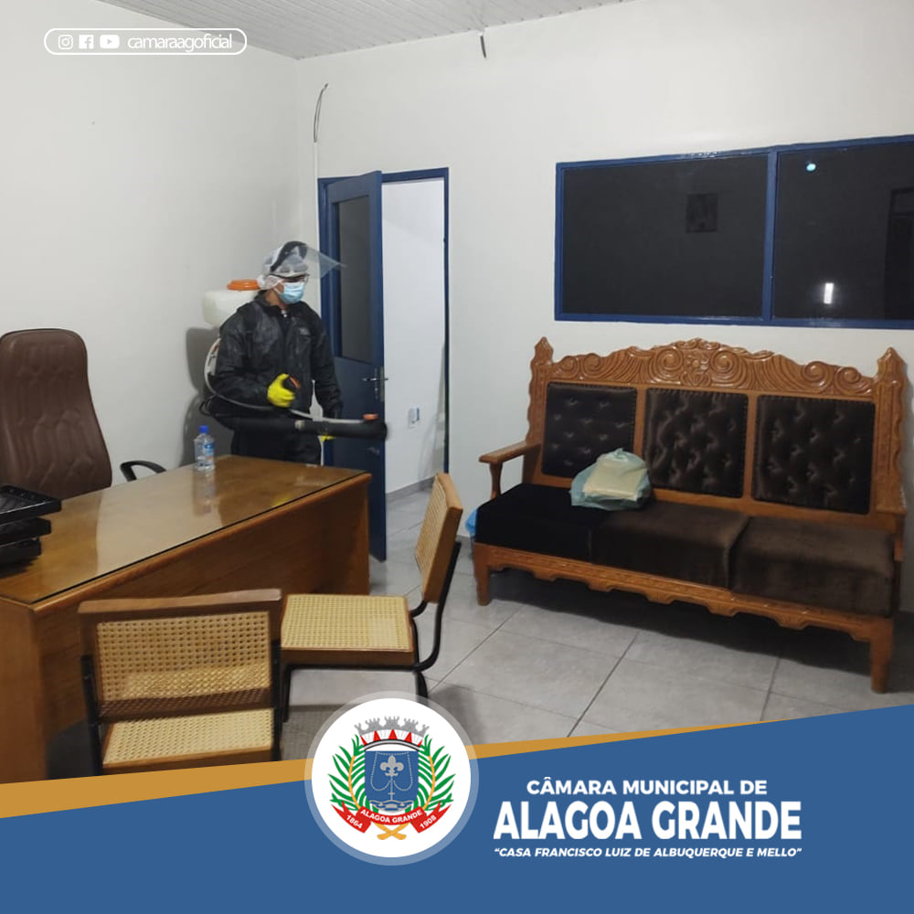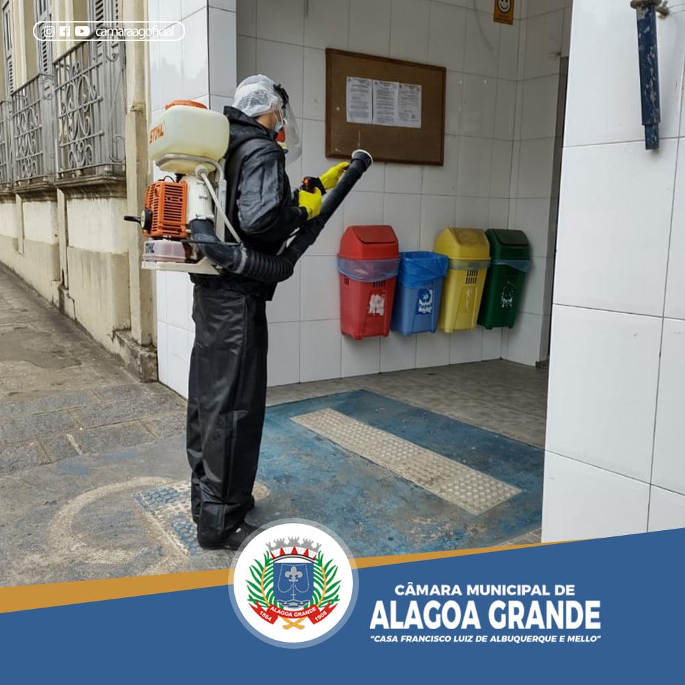 As equipes da Secretaria de Saúde continuam realizando a desinfecção em diversos pontos da cidade. Nesta quinta-feira, 06/05, foram higienizadas as áreas da Câmara Municipal de Alagoa Grande, por possuir um fluxo intenso de pessoas.