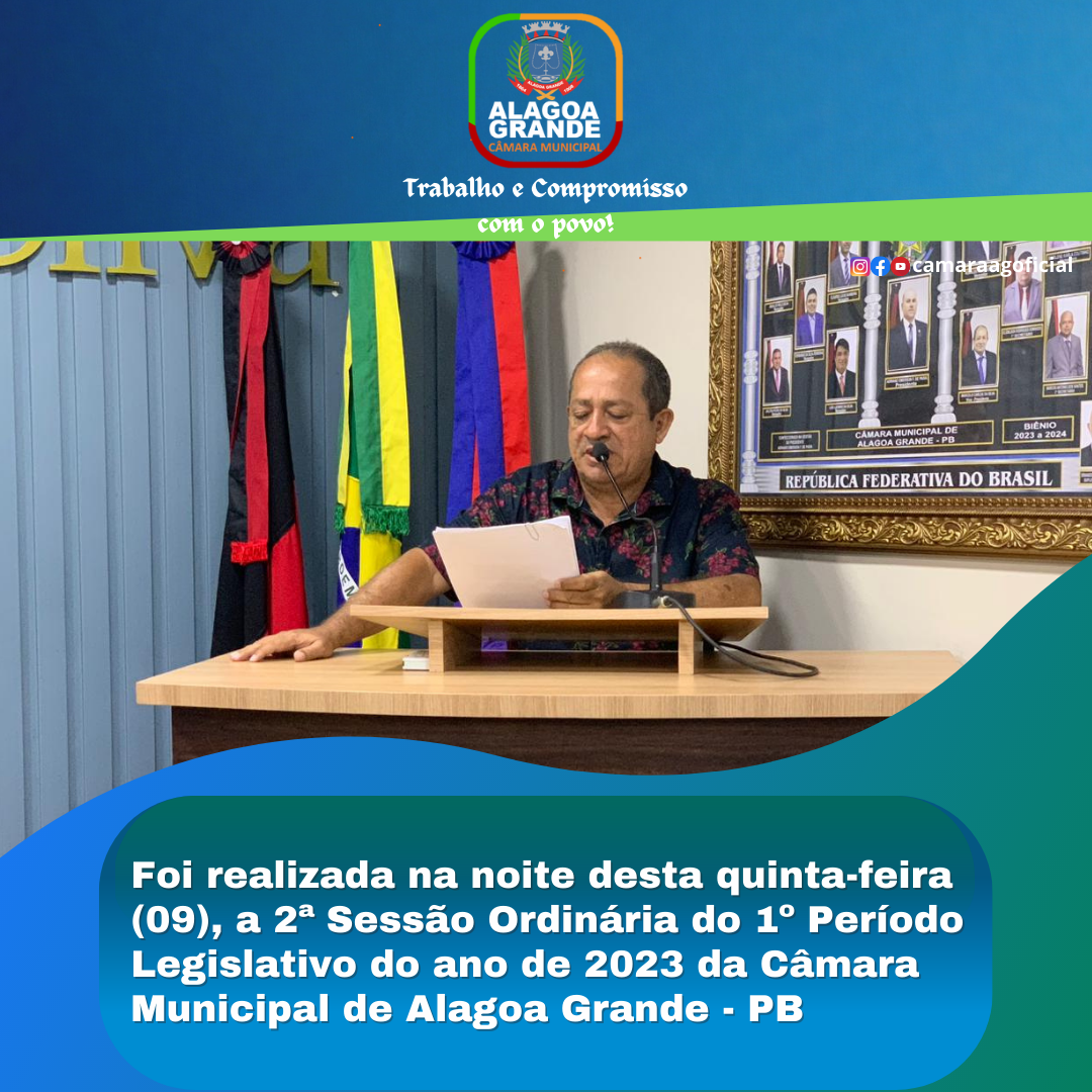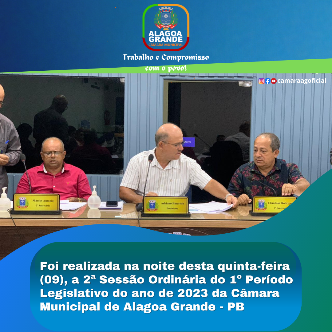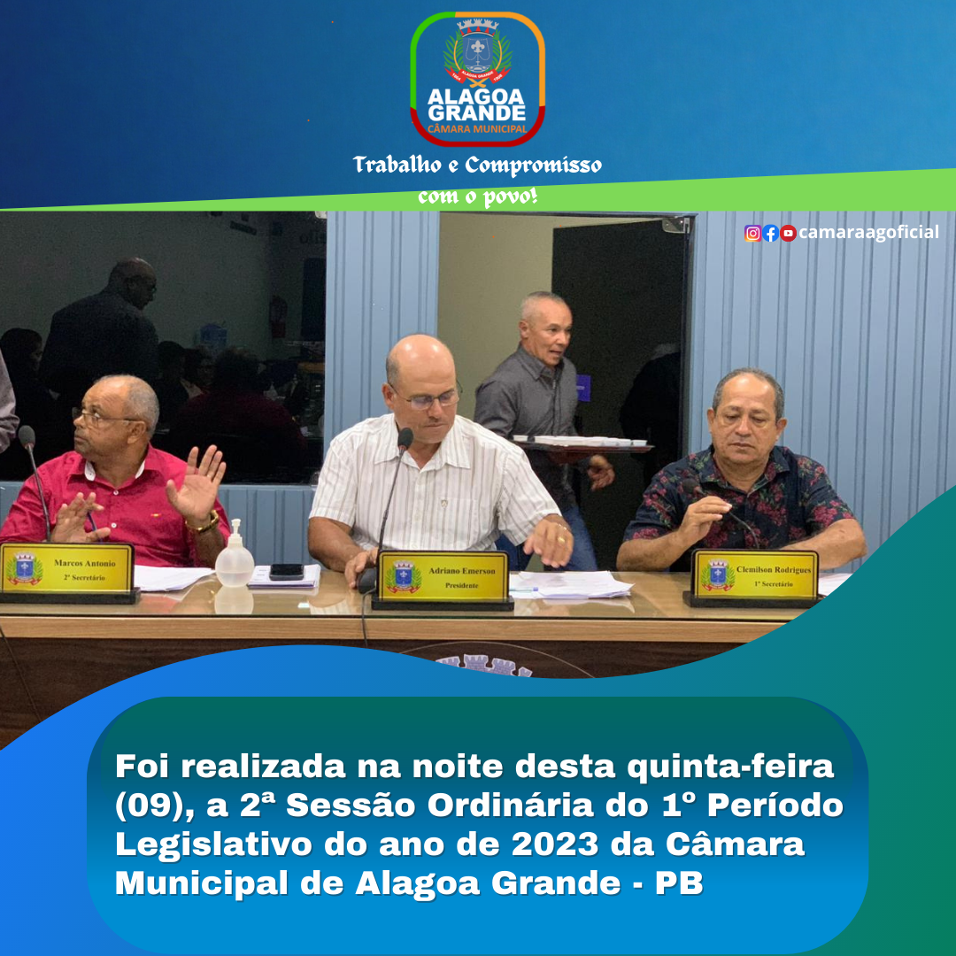 2ª SESSÃO ORDINÁRIA DO 1º PERÍODO LEGISLATIVO - CÂMARA MUNICIPAL DE ALAGOA GRANDE - PB 09/02/2023
