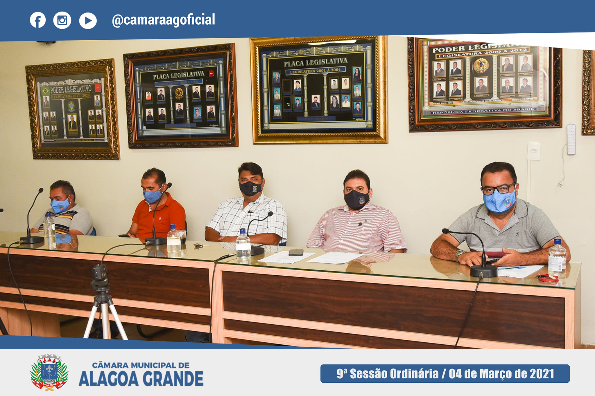 9ª Sessão Ordinária do 1º Período Legislativo do ano de 2021 da Câmara Municipal de Alagoa Grande-Paraíba. Aos quatro dias do mês de março do ano de dois mil e vinte e um, reuniu-se a Câmara
