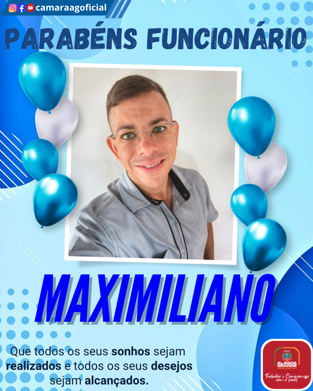 São os votos de todos que fazem parte da Câmara Municipal de Alagoa Grande - PB.