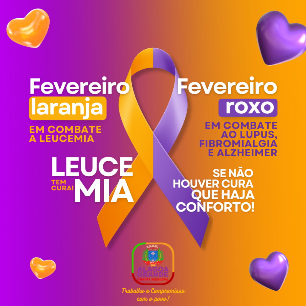 O segundo mês do ano faz um importante alerta sobre algumas doenças. As campanhas Fevereiro Roxo e Laranja têm o objetivo de atentar para a conscientização, prevenção, diagnóstico e combate ao lúpus, fibromialgia, Alzheimer e leucemia.